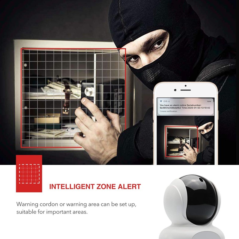 - 【Real-time & Region Human Detection Alert】Real time detect and track any sensitive movements with smart detection technology,and send alerts notification with snapshot/video to your APP immediately(must with SD/Cloud). You can also set up your own protection areas to focus on these detection areas.