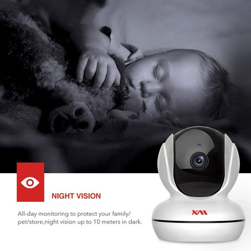 - 【FULL 1080P & NIGHT VISION】XM full HD WiFi indoor home camera with 1920*1080P resolution,and up to 355° horizontal & 100° vertical rotation,provide you with a comprehensive-monitoring experience. Equipped with XM high-tech night vision technology lens allows 33 ft. viewing range in the dark.