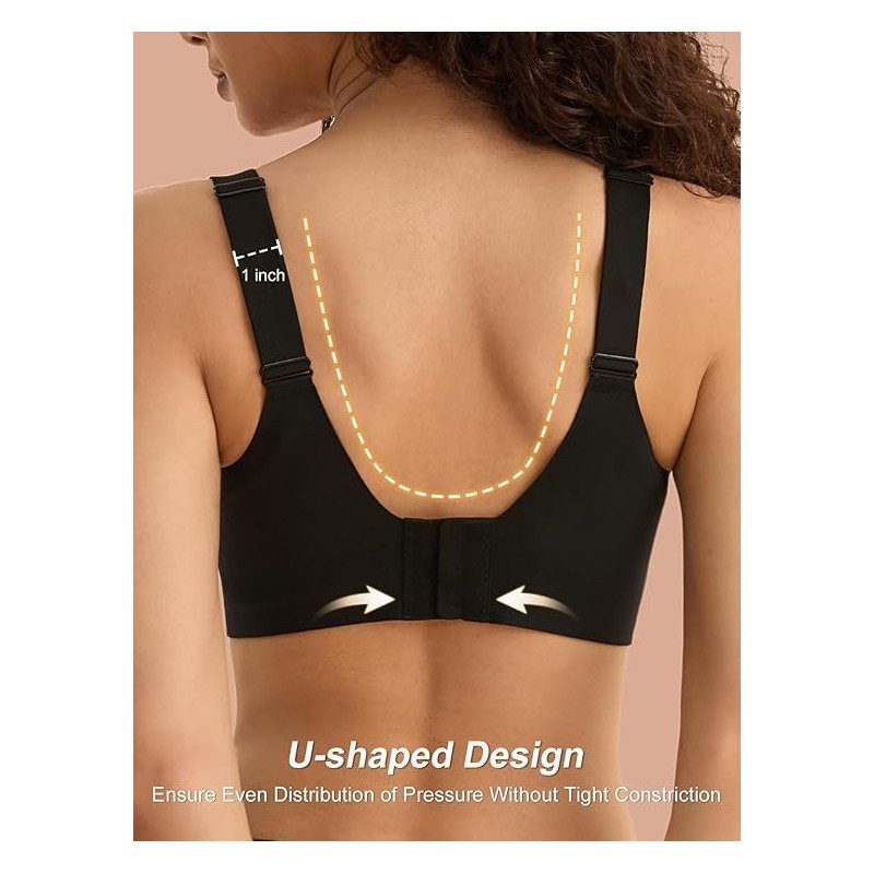 - U-back Structure: Evenly distributes pressure across your shoulders and back, eliminating tightness and strain. Paired with wider wings, it smooths back fat for a flattering, no-squeeze fit