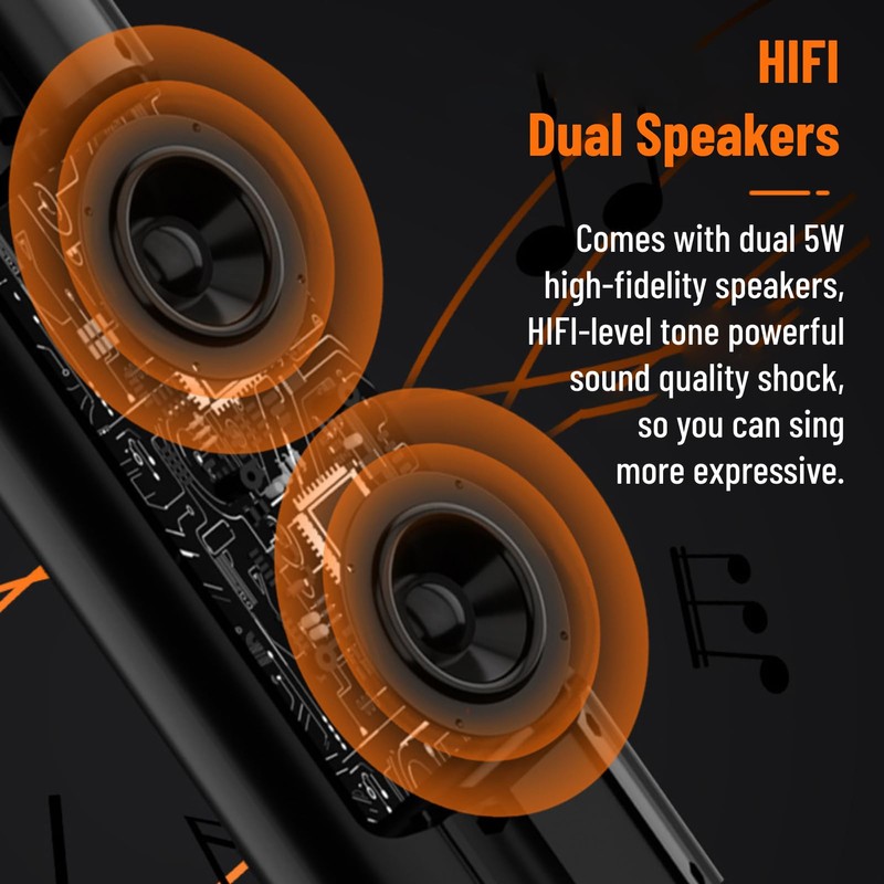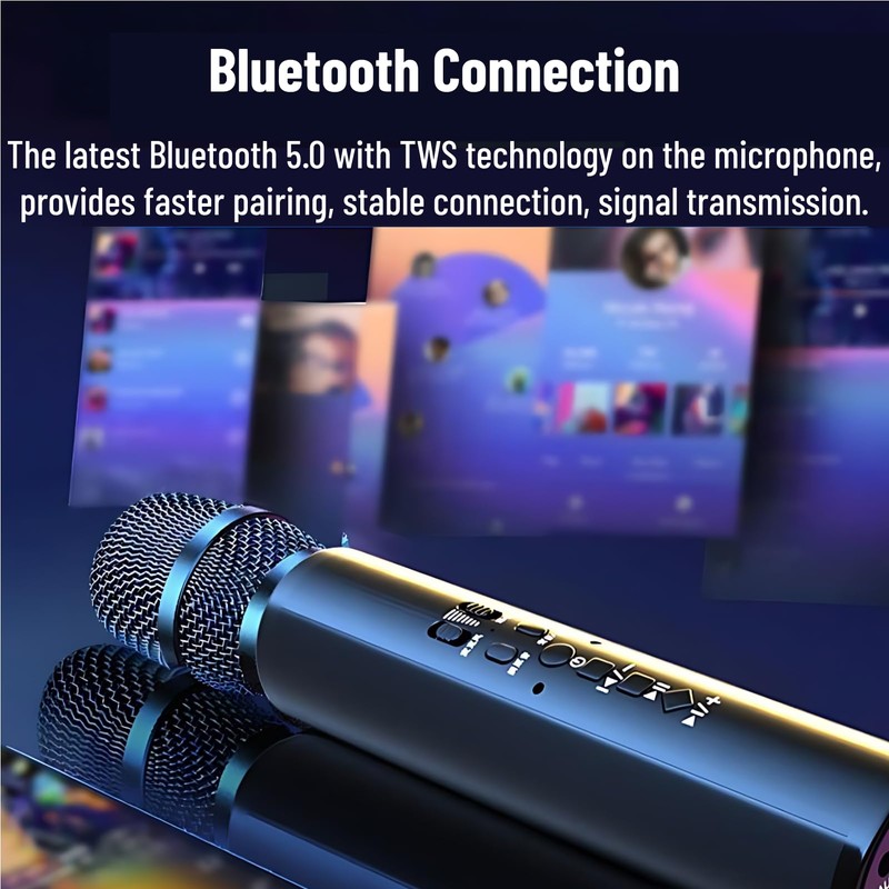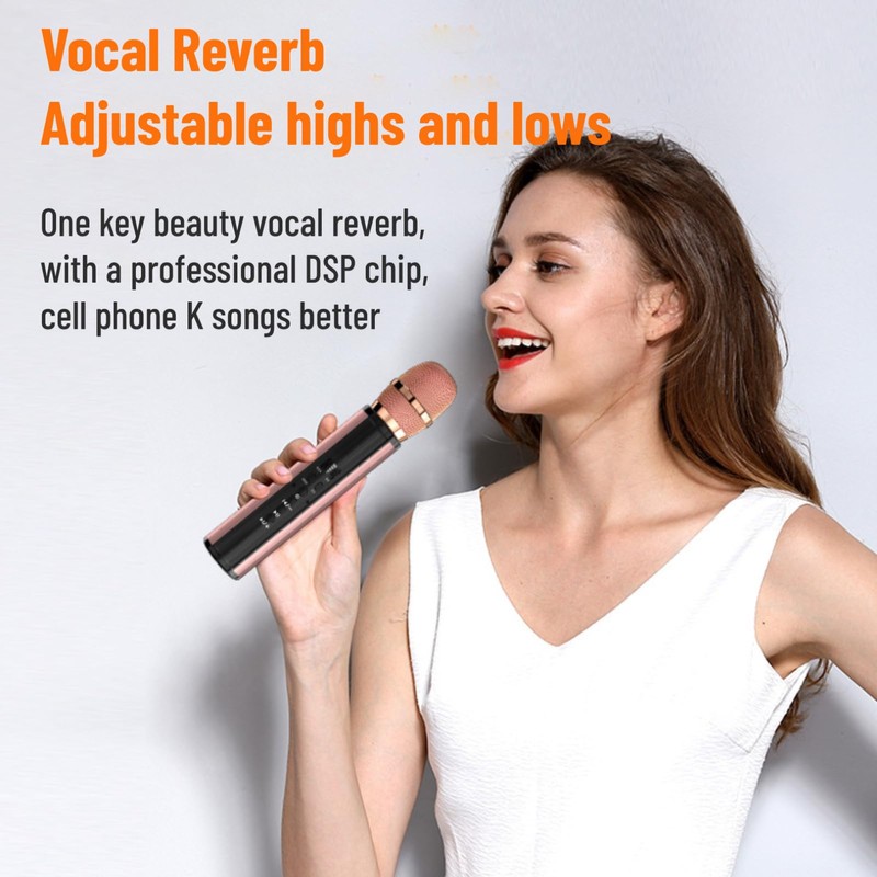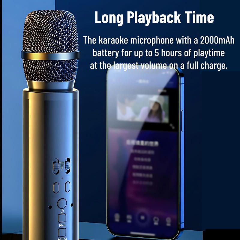 - [DSP Noise Reduction] Bluetooth handheld microphone with digital processing technology to reduce noise, clear recovery, clean and clear vocals and better the sound quality of each song.
