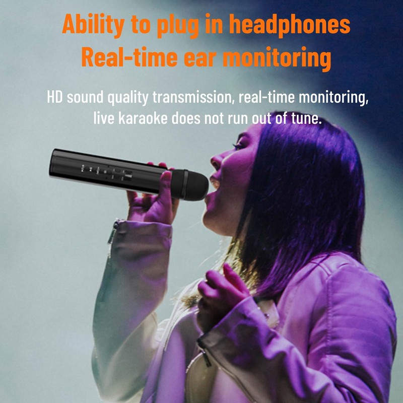 - [Ear Monitoring] This Bluetooth karaoke microphone supports real-time ear monitoring and records your singing, so you can listen to singing and capture every detail. Suitable for KTV, home parties, etc.