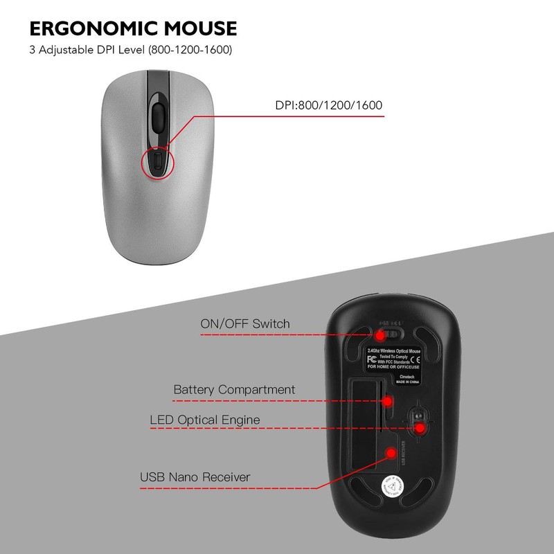 - 【HIGH PRECITION】 Wireless Mouse DPI 1600 in 3 levels- You can easily change the cursor sensitivity of this cordless mouse depending on your activities;usually 800 DPI for office, DPI 1200-1600 for 4K resolution monitor or entertainment like gaming at home. 2 polling rate: 125Hz and 250Hz; adjusted by pressing the right key and the wheel simultaneously at 3s for change.