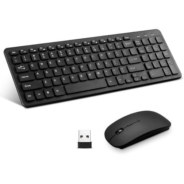 Wireless Keyboard and Mouse Combo, Compact Quiet Wireless Keyboard and Mouse Set 2.4G Ultra-Thin Sleek Design for Windows, Computer, Desktop, PC, Notebook, Laptop (Black01)