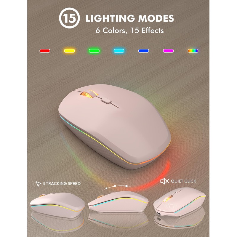 Wireless Keyboard and Mouse Combo - RGB Backlit, Rechargeable & Light Up Letters, Full-Size, Ergonomic Tilt Angle, Sleep Mode, 2.4GHz Quiet Keyboard Mouse for Mac, Windows, Laptop, PC, Trueque, Pink
