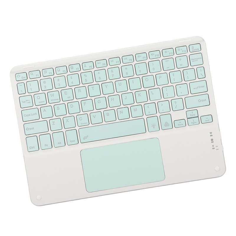 Wireless Keyboard with Touchpad Quadrate Keycap Ultra Thin 10inch Wireless Keyboard with RGB Backlight for Home Office Cyan