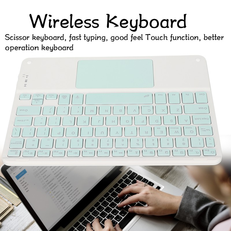 1、Touch Function: Multifunctional wireless keyboard has touch function, which allows you to get rid of the dependence of the mouse and operate the keyboard better. 2、Ultra Thin: The wireless touchpad keyboard is lightweight and ultra thin, it is very convenient to carry it for travel or business trips. 3、Low Noise: The keys of the 10inch touchpad keyboard are very quiet, and it will not disturb the rest when using at night. 4、Fast Typing: Wireless keyboard with touchpad is waterproof, dustproof, scissor keyboard, typing fast and feels good. 5、Wide Compatibility: The wireless keyboard can be used with smartphones, tablets, laptops, desktop computers.