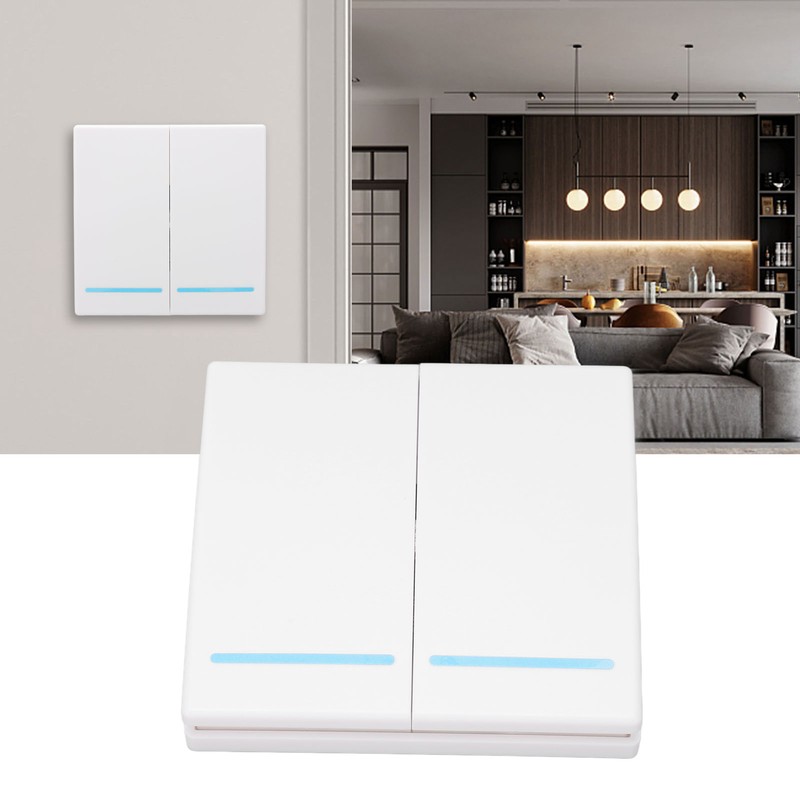Wireless Light Switch Smart Remote Control Switch Wall Switch 433MHz for Home Office 2 Gang