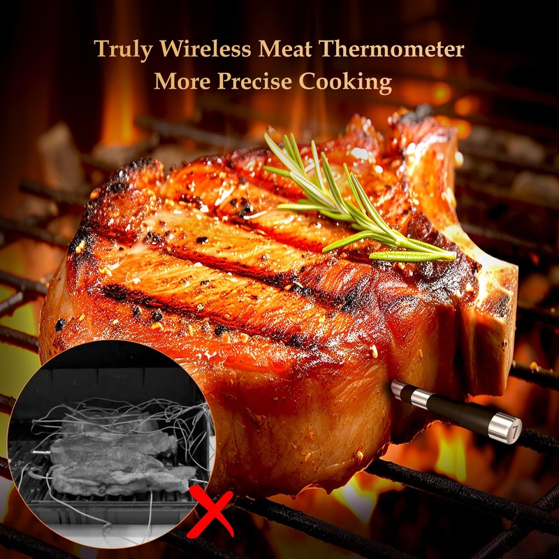 - Longer Wireless Range Connectivity Over 800Ft : This meat thermometer features the advanced 5.2 Bluetooth wireless technology, allowing you to monitor meat temperatures remotely while chatting with friends and family and still get a perfectly cooked meal.