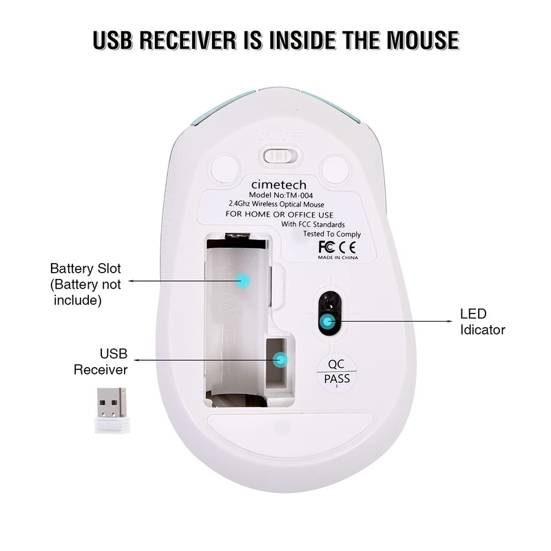 The USB receiver stays in your PC USB port or stows conveniently inside the wireless mouse when not in use.
