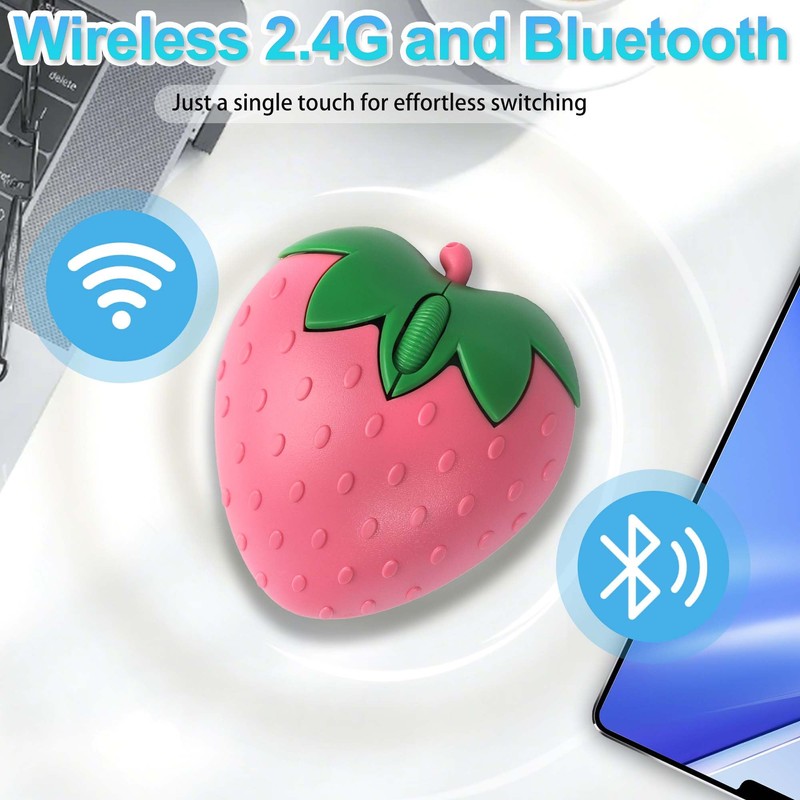 - Cute strawberry design: This wireless Bluetooth mouse adopts a cute strawberry shape, which is novel and unique, cute and practical. This wireless dual-mode mouse is colorful and suitable for women and young people. It can add a touch of playfulness to your study, work or daily use, and add fun to the learning process. With this cute strawberry mouse, children will be more willing to participate in online courses.