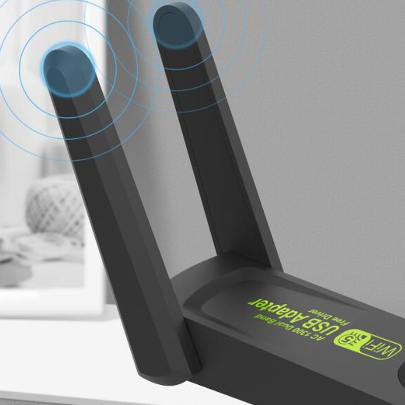 1、Working Band: Support 2.4GHz and 5GHz two working bands, you can freely choose one of the working bands, to avoid wireless interference, dual band collocation, signal transmission more in place. 2、Transmission Standard: 802.11ac wireless transmission standard, wireless network transmission rate up to 1300Mbps, brush the web page to play games, watching movies without lag. 3、Dual Antenna: Wireless network card adapter adopts optimized dual antenna combination, high signal gain, 180 degree free rotation design to adjust the signal strength at any time. 4、USB3.0 High Speed Transmission: USB3.0 is the real Gigabit, USB transmission rate up to 5Gbps, effectively improve the stability of network card transmission, high speed transmission without lag. 5、Heat Sink Design: Wireless network card adapter adopts heat sink design, effectively and quickly dissipate heat to maintain normal working conditions and prolong service life.