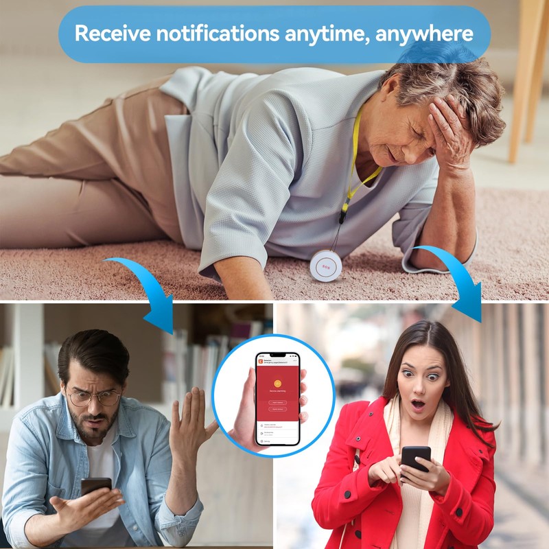• 【REMOTE MONITORING VIA APP】Connects to your smartphone for remote alerts. Receive notifications instantly when the elderly person presses the call button or encounters an danger or fall, for timely assistance even when you're in a far away place.