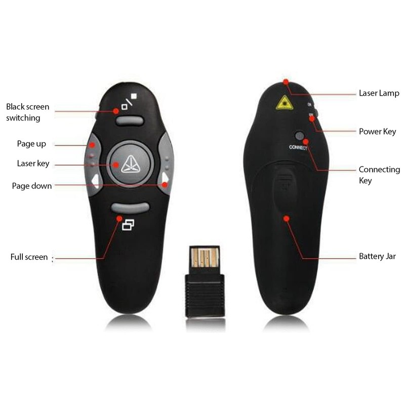 1. Remote Control: Presentation clicker adopts 2.4GHz wireless technology, which can remotely control the presentation at a distance of about 15 meters.