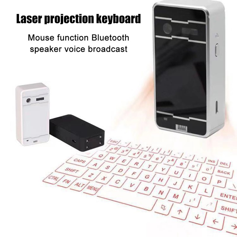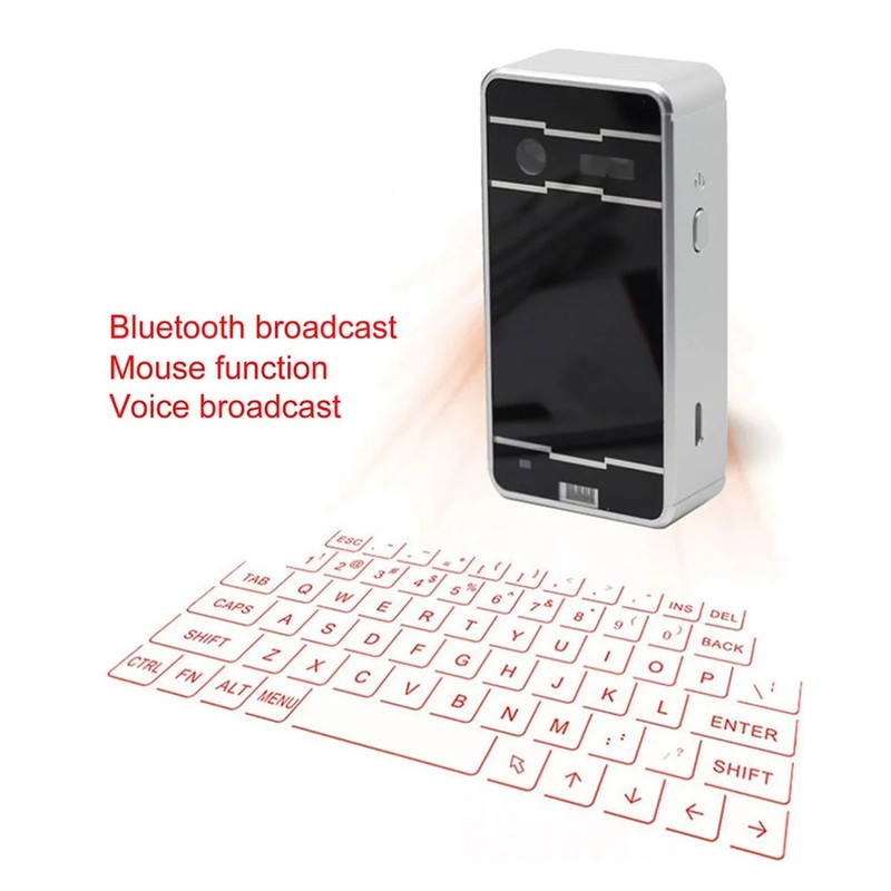 1、Virtual projection keyboard: more stable and smarter; better enhance the buyer's experience. Easy to move. 2、Clear resolution: One key to turn on off easily connect to Bluetooth technology, British QWERTY keyboard layout, fast and accurate data input. The keyboard is equipped with a mini Bluetooth speaker, which supports voice reports and music playback. 3、Charging: Lithium ion polymer battery, mini B type charging interface, support USB interface and Bluetooth at the same time, the connection with mobile devices is very convenient. 4、Compatible with new devices: Compatible for Windows XP 7 8, for Windows Phone 7, for IOS4 5 6, for Android 3.1 and higher, for OS X. 5、Fast and portable: You can take it with you. It can be placed indoors and outdoors, offices, rooms, restaurants and other places. It is a perfect helper in life. It's also a perfect gift for family and friends.