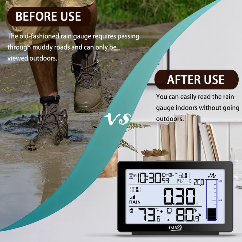 - Multi Function Rain Gauge Weather Station --- In addition to rainfall monitoring, this digital rain gauge can also provide real-time indoor and outdoor temperatures, WWVB Radio control time function. What’s more, dual alarm clock with snooze function and calendar is practical in your usual life. Functional and stylish, JMBay rain gauge weather station is the perfect decoration for your living room, bedroom, office, greenhouse, tent, and more.