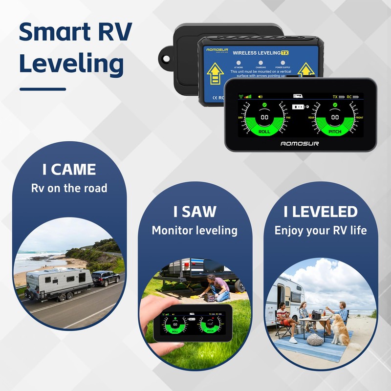 Wireless RV Leveling System & Off-Road Inclinometer – Dual-Mode Vehicle Angle Monitoring, Smart Electronic Camper Leveler, Automatic Trailer Level Indicates