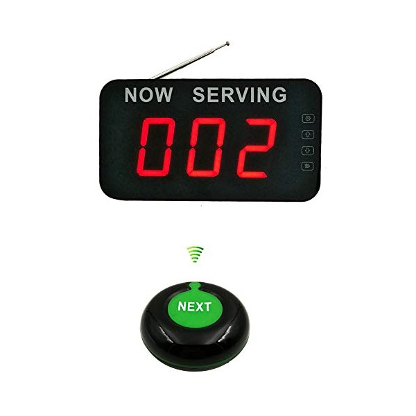 - Display can be wall intalled or desktop style. And can dingdong beeper or english voice to prompt number change