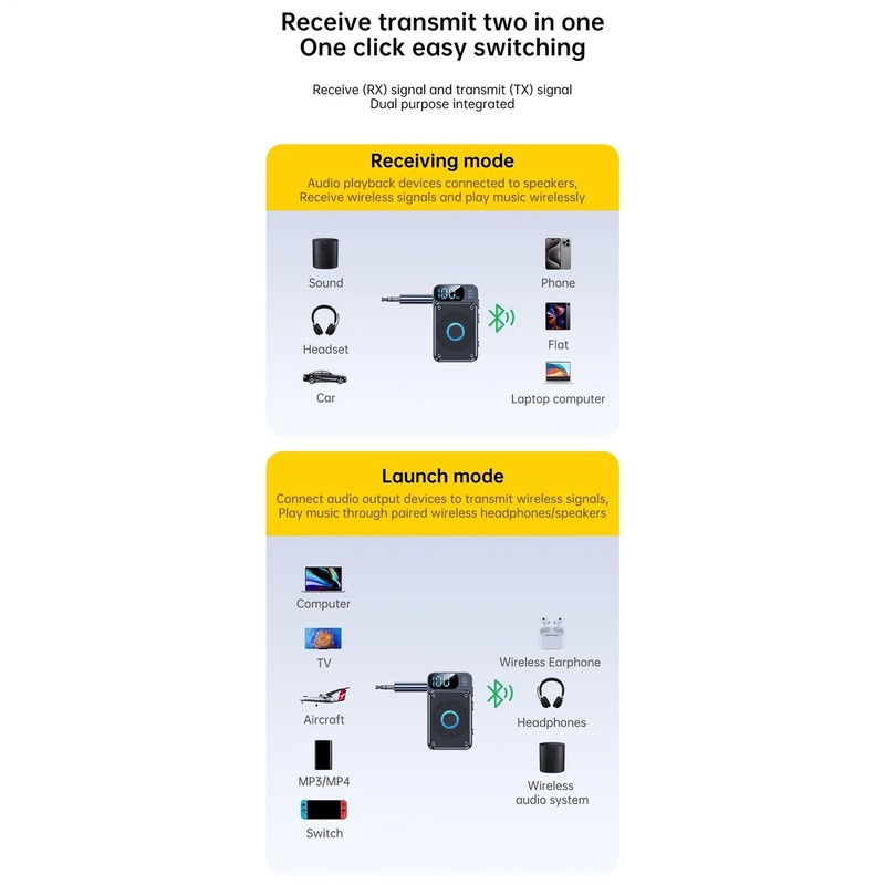 - Versatile Functionality: Operates efficiently with car stereos and AUX devices, enabling wireless-to-wired conversion through double-mode support for an adaptable and comprehensive audio setup