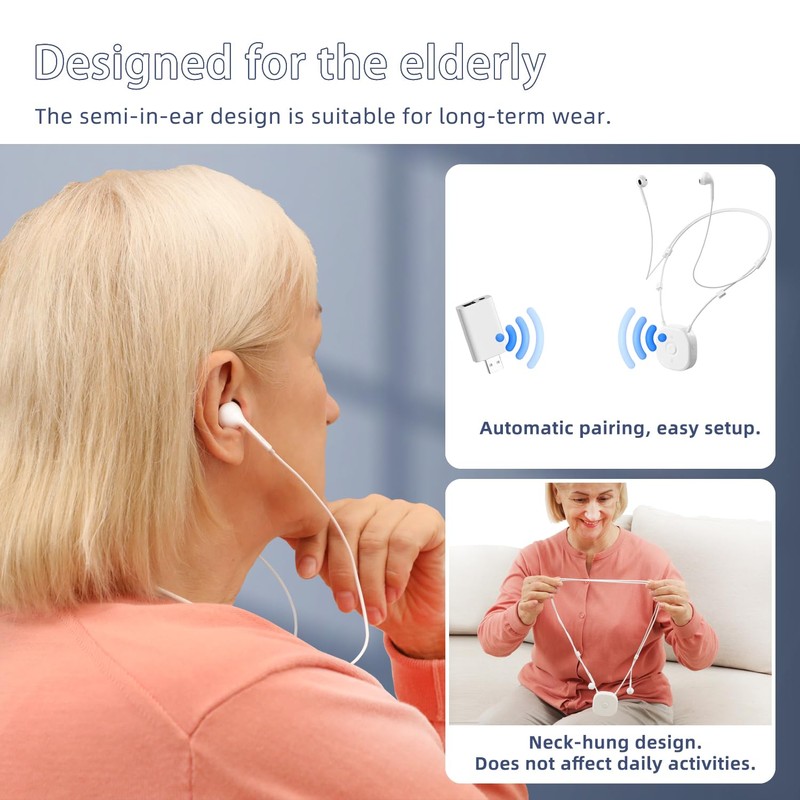 - User-friendly design: You can independently adjust the volume for each side of the headphones to accommodate different hearing levels in your left and right ears, ensuring optimal comfort. Additionally, the TV headphones feature a neckband design that makes them lighter and more portable than conventional headphones for TV.