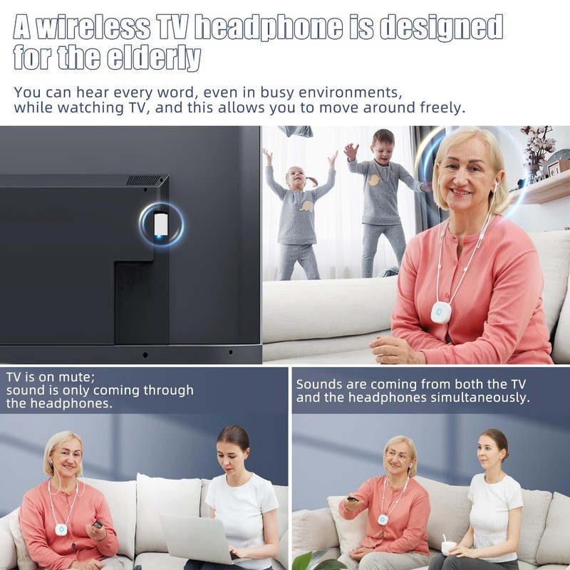 - Enhanced TV Watching Experience: Wireless TV headphones enable you to concentrate on the television show without interference from background noise. It mutes the TV and delivers clear TV sound directly to your ears. Consequently, you can understand every word without raising the TV's volume, preventing any disruption to those around you.