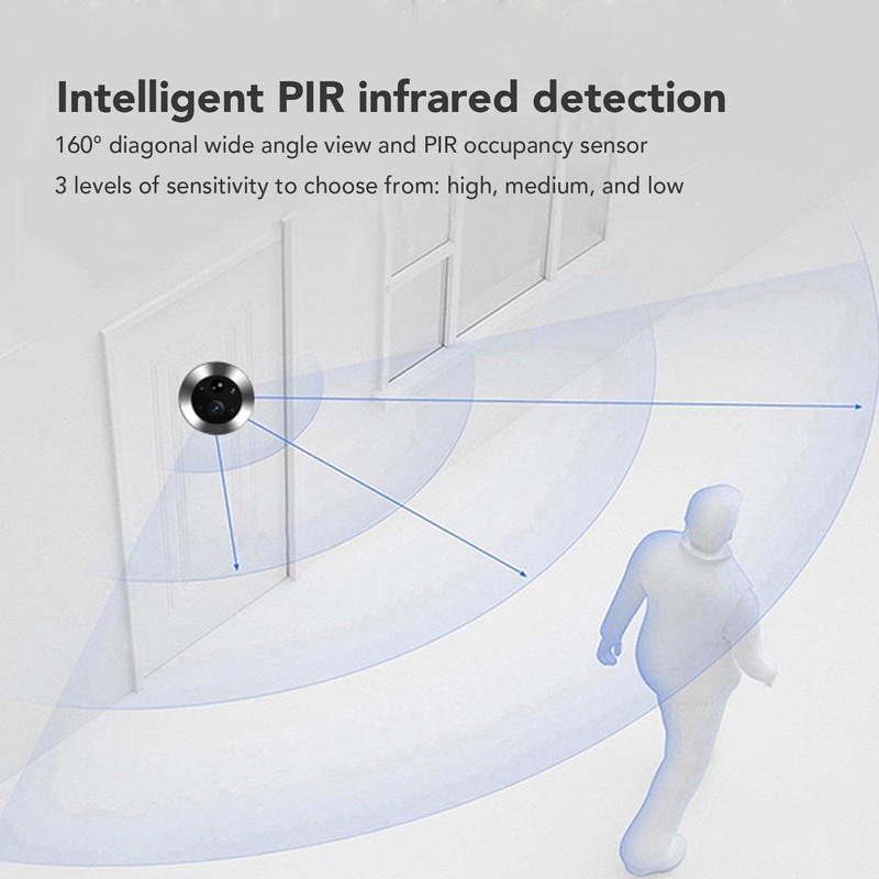 - Intelligent PIR infrared detection: With a diagonal wide angle view of 160° and a PIR sensor for human induction, there are three sensitivity levels to choose from.