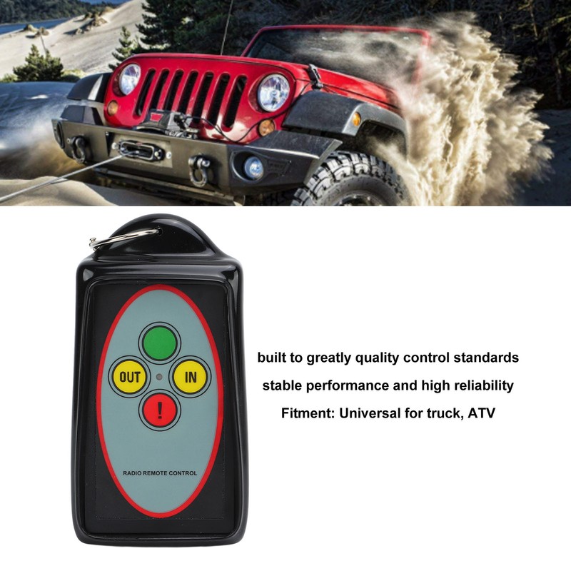1、Universal Fitment: Wireless winch remote control kit universal fit for ATV, truck, etc, designed for self recovery winches, perfect matching. 2、Premium Material: Winch controller is made of premium ABS material, wear resistant, impact resistant, high strength and durable. 3、Excellent Performance: Professional manufacturing, fine workmanship, strong anti interference, 434MHz frequency, up to 75ft long range. 4、Strict Standards: Built to greatly quality control standards, wireless winch remote control switch has stable performance and high reliability. 5、Simple Operation: Simply press the remote transmitter and you can operate the winch, convenient for using, save your time and energy.