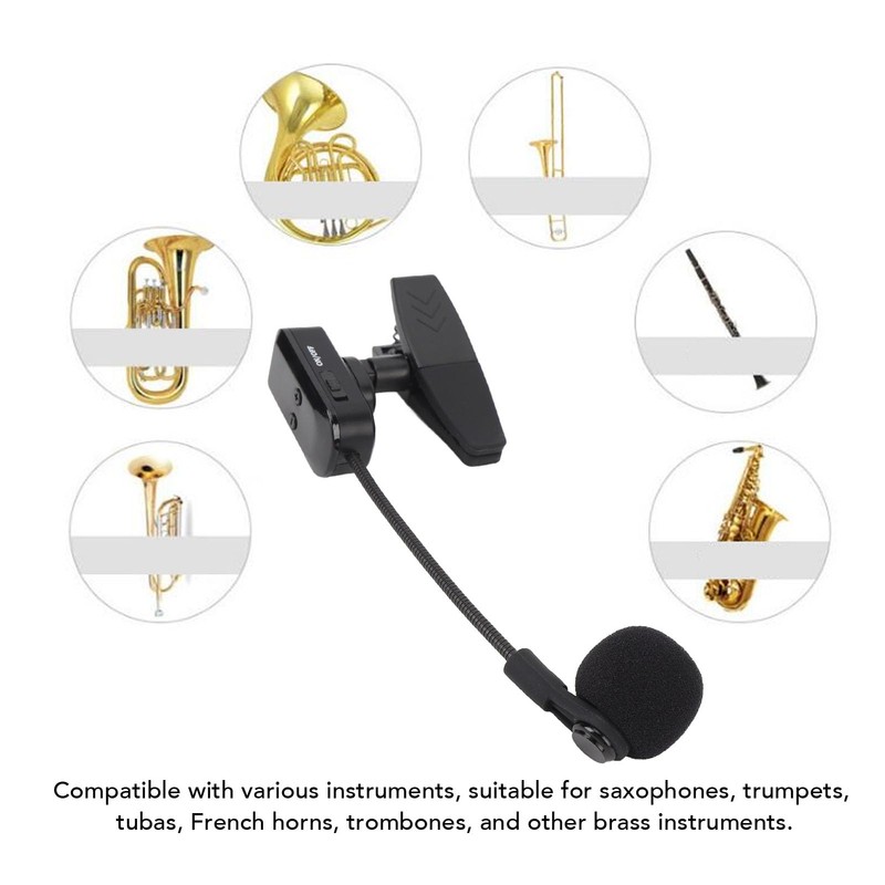 WirelessSaxophone Microphone, Clip on Instrument Microphone, WirelessTransmitter and Receiver for Saxophone, Trumpet, Trombone, 131ft Range, Plug and Play