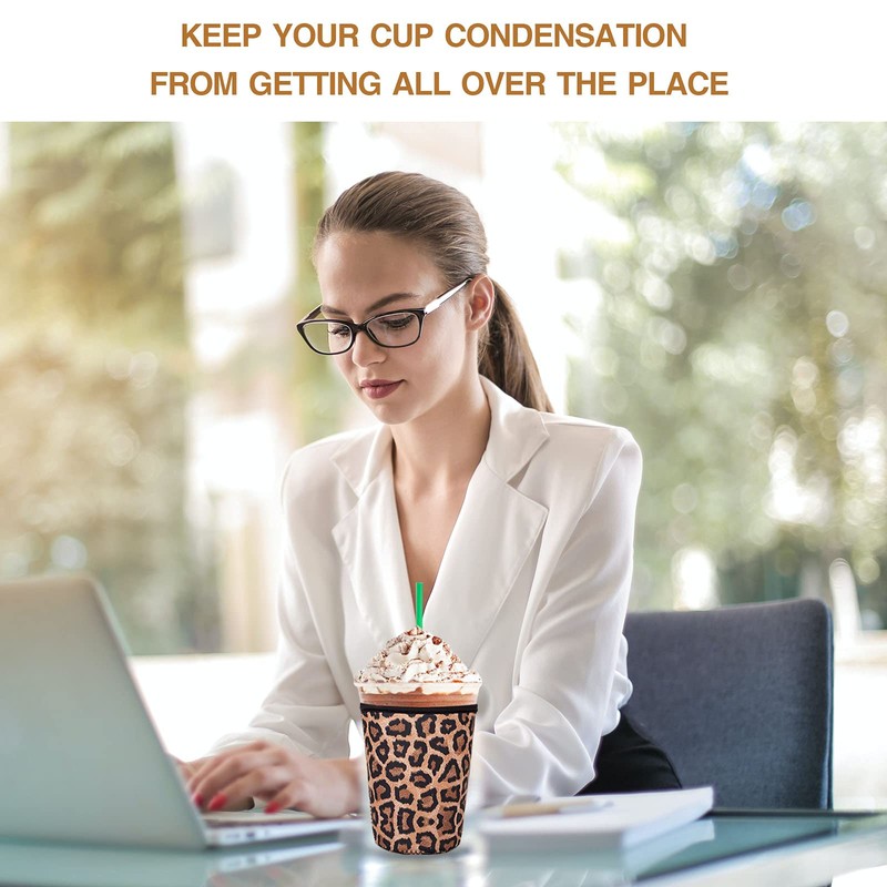 Wirepo 2 PCS Reusable Iced Coffee Sleeve for 24oz Cold Drinks Beverage,Insulated Neoprene Cup Holder with Handle for 30oz-32oz Tumbler Cup,Dunkin Donuts, Starbucks,McDonald's Coffee(Leopard)