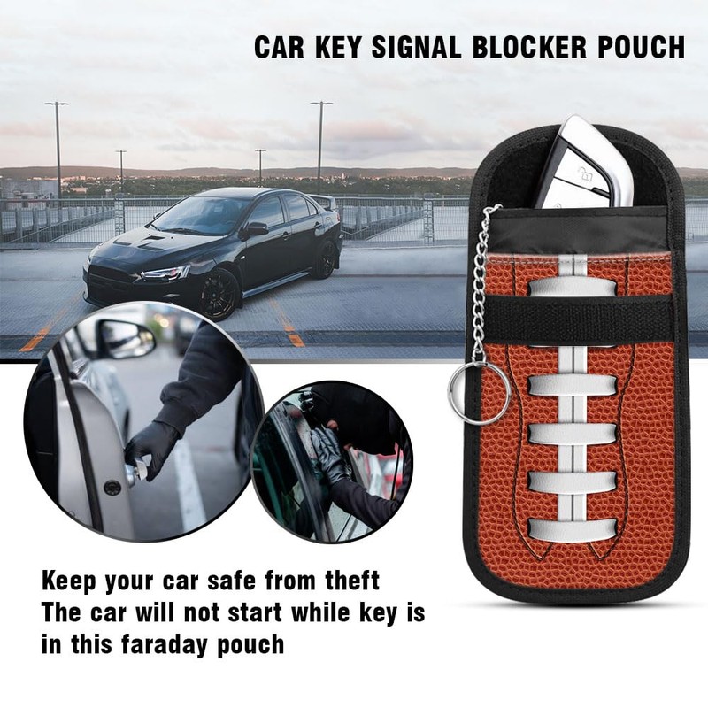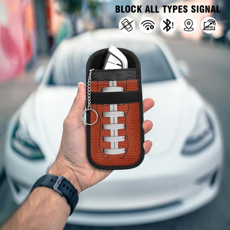 WIRESTER Faraday Bag for Key Fob, Anti-Theft Pouch, Car RFID Signal Blocking Key Fob Protector - Football Pattern