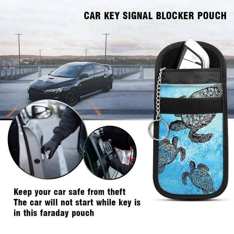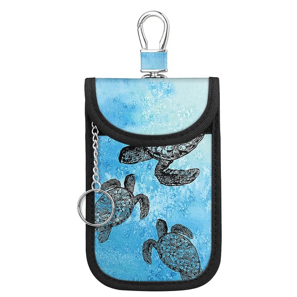 WIRESTER Faraday Bag For Key Fob, Anti-Theft Pouch, Car RFID Signal Blocking Key Fob Protector - Ocean Sea Turtles