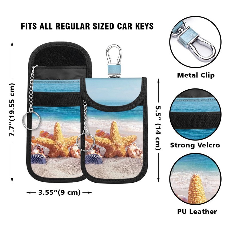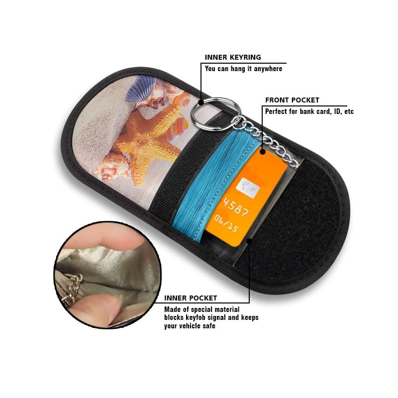 WIRESTER Faraday Bag for Key Fob, Anti-Theft Pouch, Car RFID Signal Blocking Key Fob Protector - Seashells On The Beach