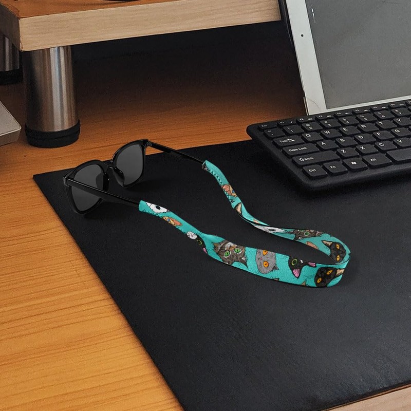WIRESTER Fashion Eyeglasses Strap, Floating Sunglass Holder Strap, Safety Flexible Neoprene Eyewear Retainer for Men Women - Cat Faces Pattern
