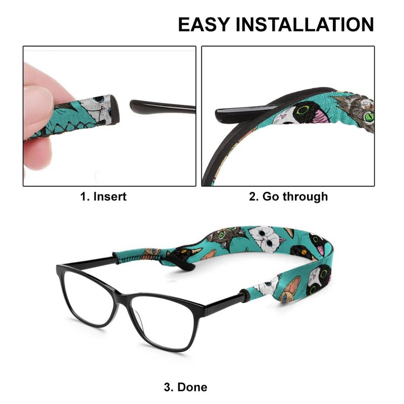 - EASY TO USE: This nice neoprene eyeglass strap is easy to use by inserting your eyeglass frame into both ends of the strap and then sliding it up and down to achieve optimal fixing effect. It can float on the water to help you do outdoor activities and water sports without worry.