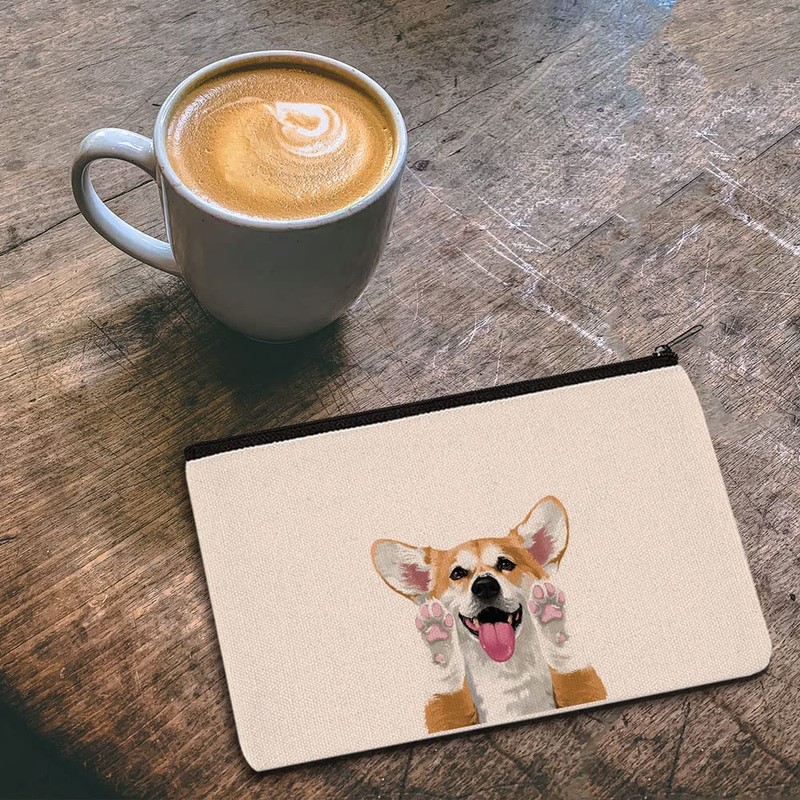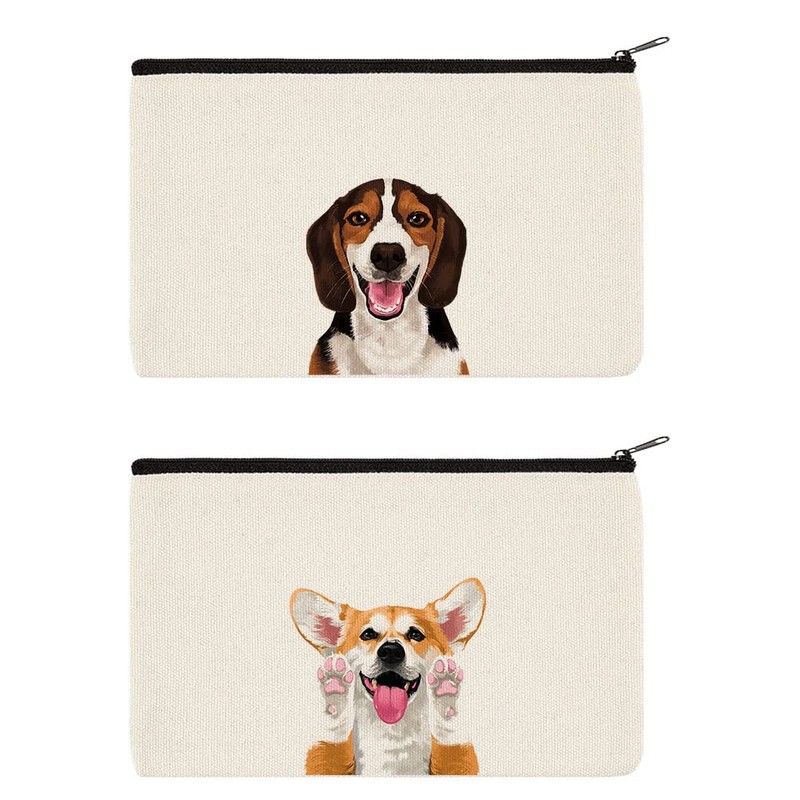 WIRESTER Set Of 2 Canvas Zipper Makeup Bag, Cosmetic Pouch, Organizer Case for Women Girl, Multi-Purpose Travel Cosmetic Bag - Cute Red Pembroke Welsh Corgi Dog & Cute Beagle Puppy Dog