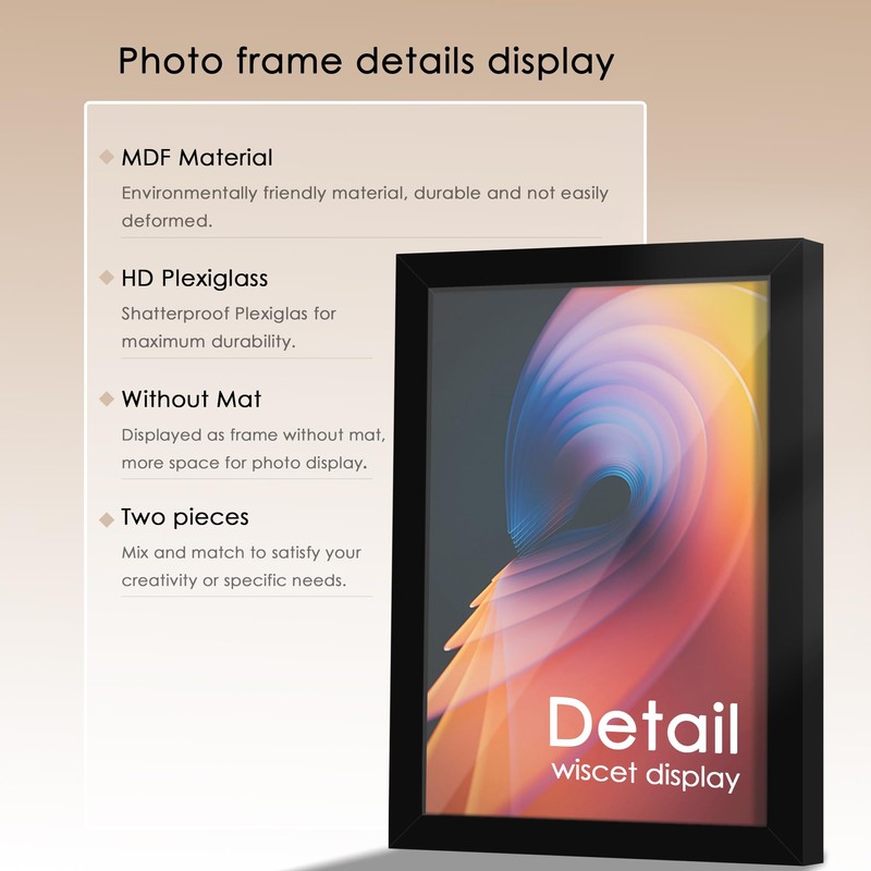 - Material: The 6x9 picture frame is made of durable engineered wood, with a high-definition shatter-proof Plexiglass panel and a hard base plate, which will not be deformed or damaged like other plastic materials, so that your work or photos can be more efficient protection and longer storage!