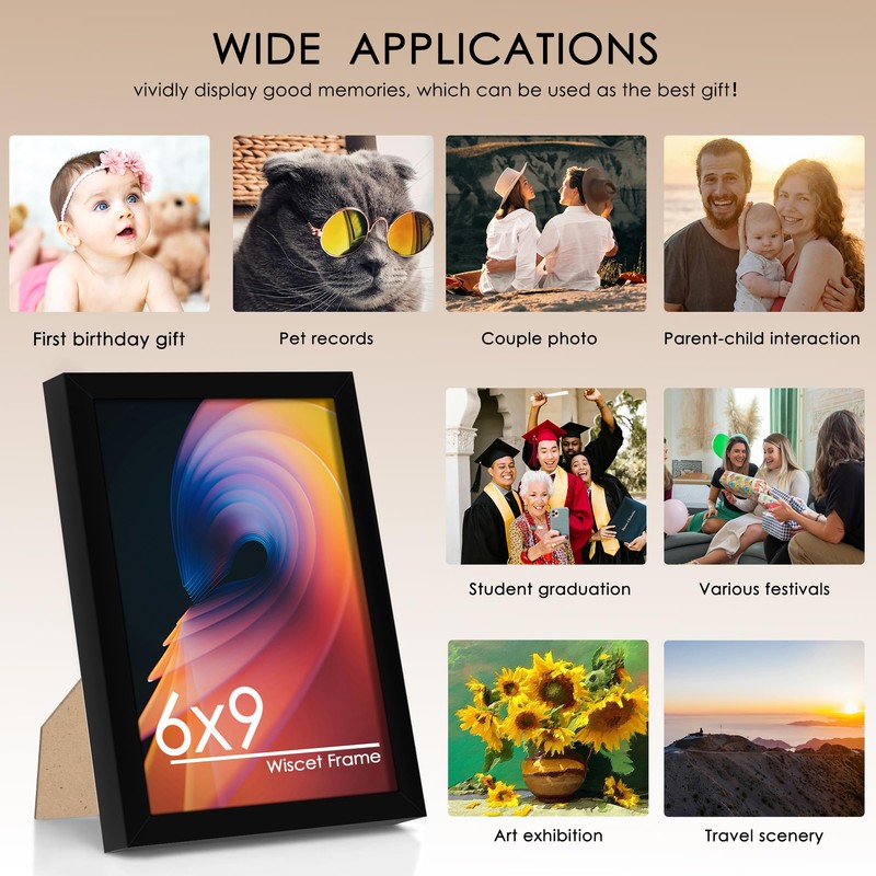 - Size: 6x9 frame Suitable for 6x9 photos or works, The full display function can make your photos more intuitive, and clear and make them look more beautiful.