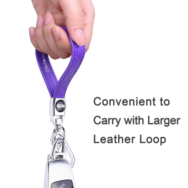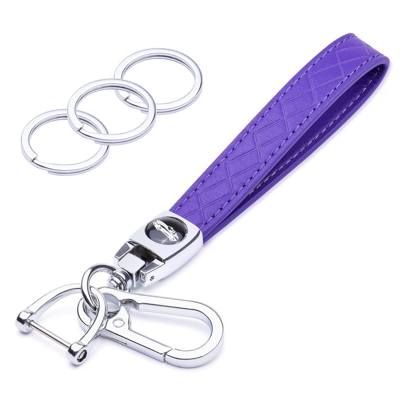 Wisdompro Microfiber Leather Car Keychain, Universal Key Fob Keychain Leather Key Chain Holder with 3 Keyrings and 1 Screwdriver for Men and Women - Purple