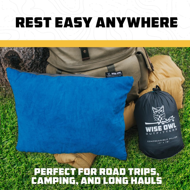 Wise Owl Outfitters Camping Pillow – Memory Foam Travel Pillow for Airplane Sleeping, Hiking, Backpacking & Outdoor Use - Small & Portable for Adults, Car, Camp & Tent