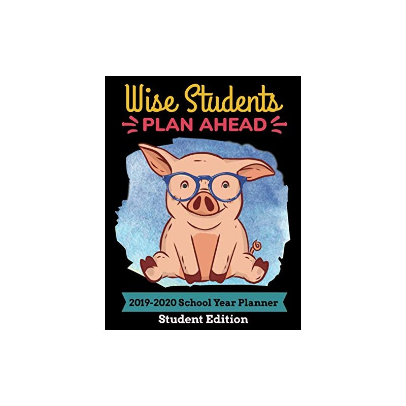 Wise Students Plan Ahead 2019-2020 School Year Planner Student Edition: 8.5" x 11" 110 Page Book Happy Pig blue on black Notebook Custom Lesson ... Lover Gifts (CME 2019 Student Pig Planners)