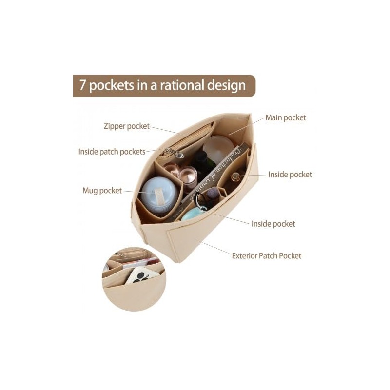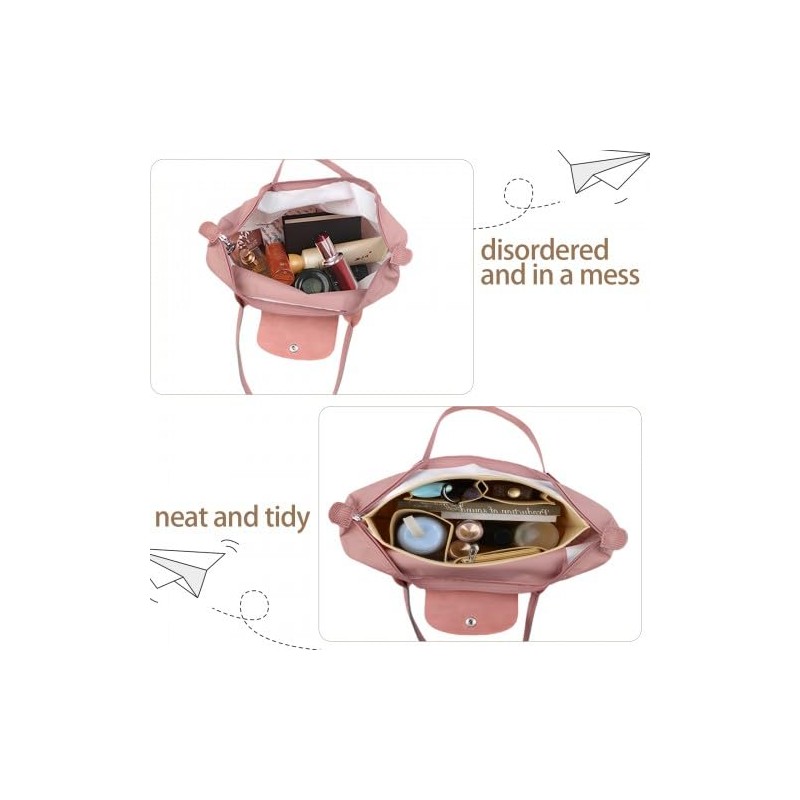 - MULTIPLE POCKETS Our tote bag organizer features six thoughtful compartments that optimize the space in your bag. Each pocket keeps your essentials neat and easily accessible.