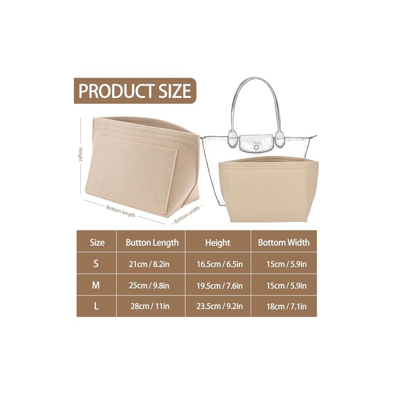 - OPTIMAL FIT Our pocket organizer insert has been expertly crafted for the perfect fit in Longchamp handbags and is available in three convenient sizes: Small (26 x 13 x 17 cm), Medium (30 x 13 x 20 cm) and Large (40 x 17 x 25 cm). Please measure the inner dimensions of your bag to ensure a perfect fit.