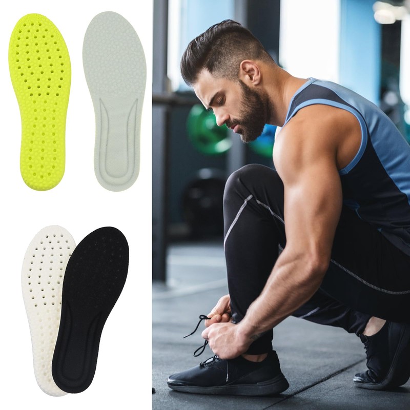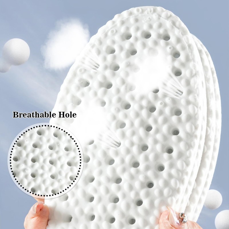 - ⭐BREATHABLE DESIGN: Equipped with breathable holes and a mesh fabric surface, these cushioned shoe insoles enhance airflow within your shoes, promoting breathability and moisture-wicking. Keep your feet cool and dry throughout the day for maximum comfort.