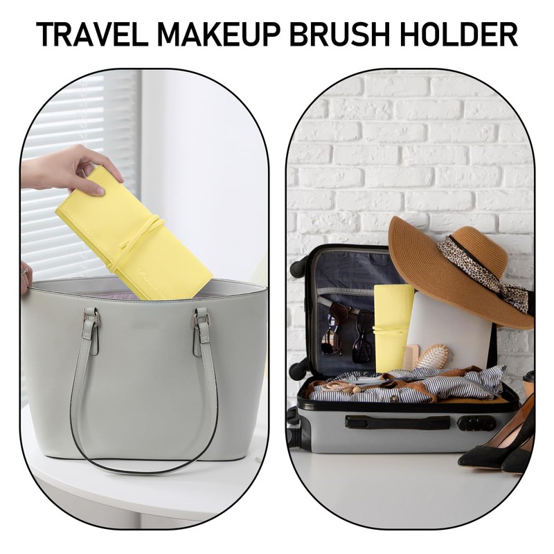 WiseBoy - Soporte para brochas de maquillaje, organizador con correa para cinturón, Amarillo