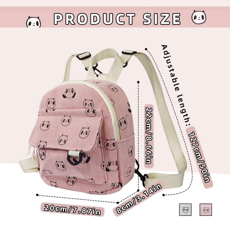 - Compact and Cute: The size of this girls small backpack is 19 * 21 * 9 cm, and it is compact. The small backpack has a panda pattern appearance, which looks cute