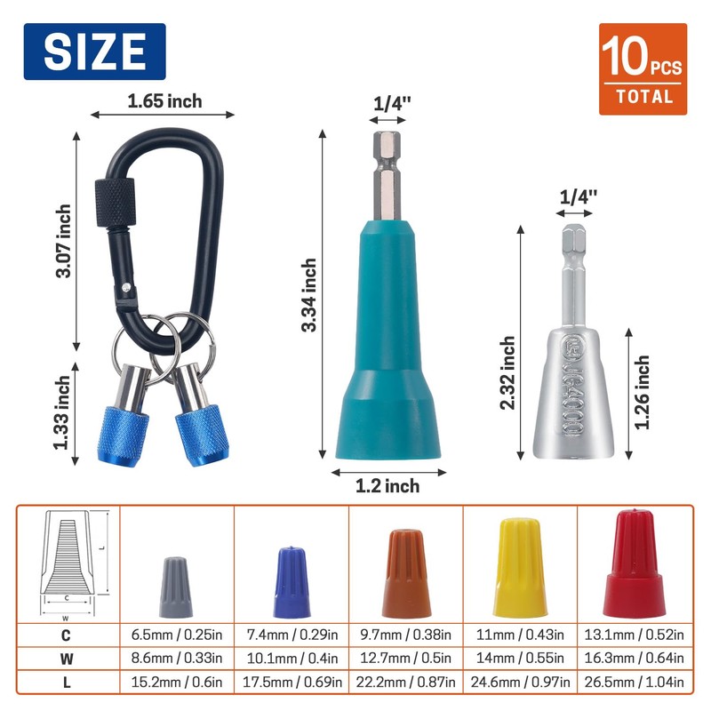 - Wire Twister Tool for Drill: This wire twister set includes a plastic wire nut twister, a metal wire twister, 2 bit holders, and a D-ring, easy to carry and operate. Whether for home appliance repair, cable installation, or electronic assembly, it meets various needs.