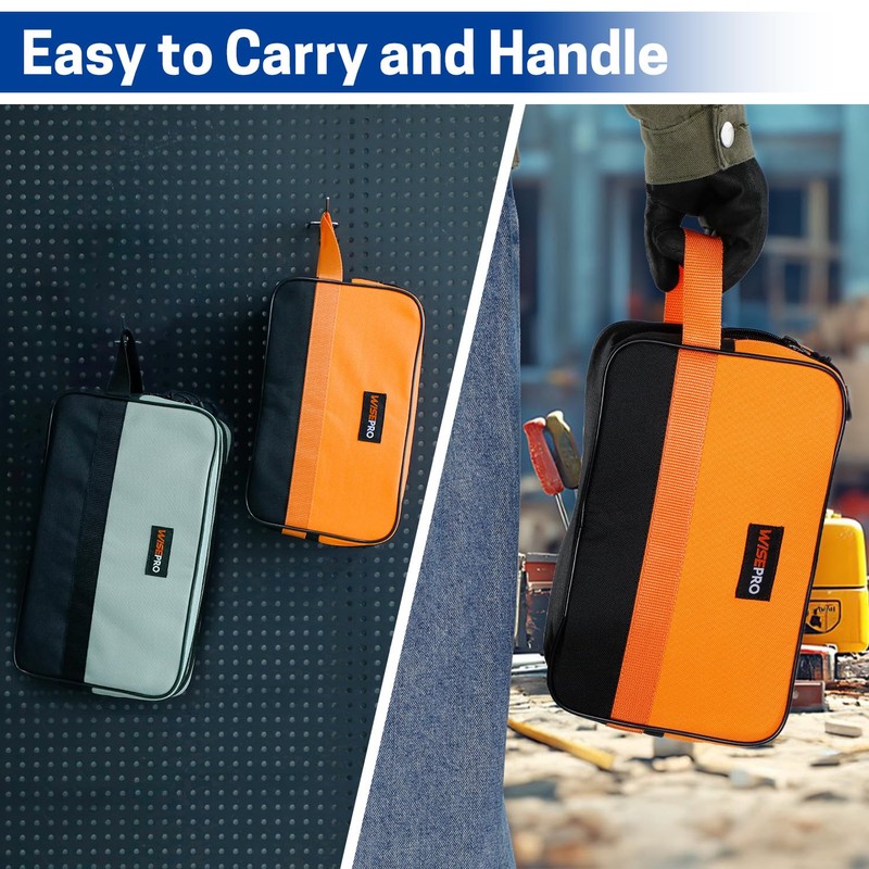 • 【DUAL-COMPARTMENT DESIGN】Featuring a connected dual-compartment layout, this zipper bag allows you to separate and organize smaller tools and parts efficiently, keeping items like meters and leads, sockets and wrenches, or earplugs neat and easily accessible.