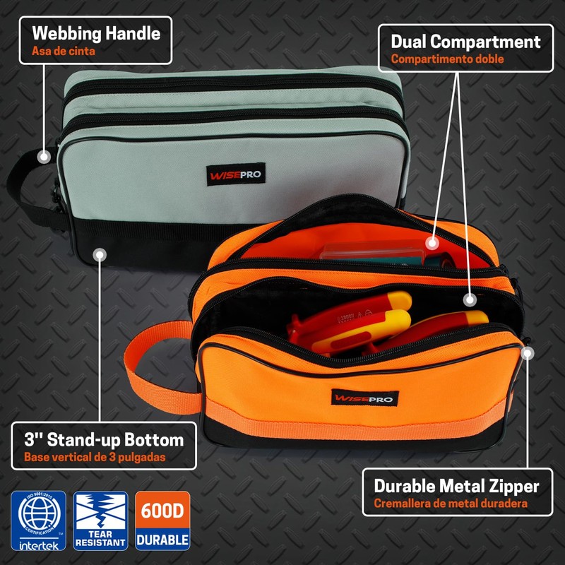 WISEPRO Zipper Tool Pouch Set, 2-Pack Heavy-Duty Tool Pouch - Dual Compartmen...