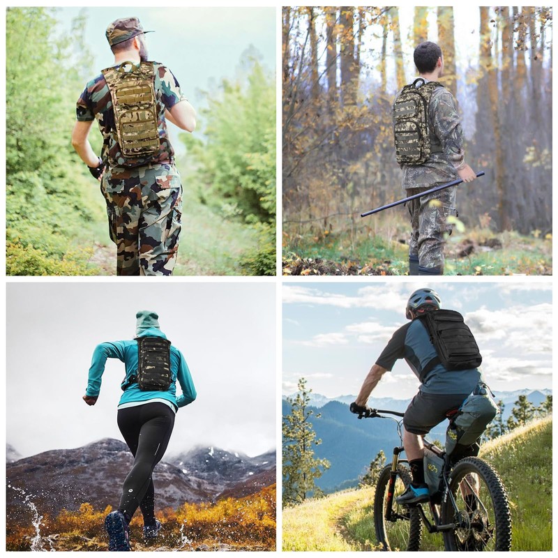 - MOLLE COMPATIBLE - Our tactical molle hydration pack is well constructed with 5 MOLLE straps and is suitable for attaching your hiking, camping or other essential gear and expands your backpack for a day trip.