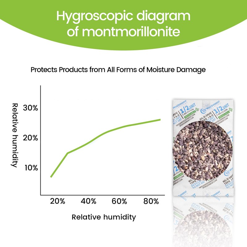 - [Work Great]: Bentonite clay outperforms silica gel and other synthetic desiccants, and will reduce humidity inside your packages to lower levels. This premium-grade material provides top-notch performance every time. Keep your valuables safe from moisture damage with Clay anti-moisture packs.