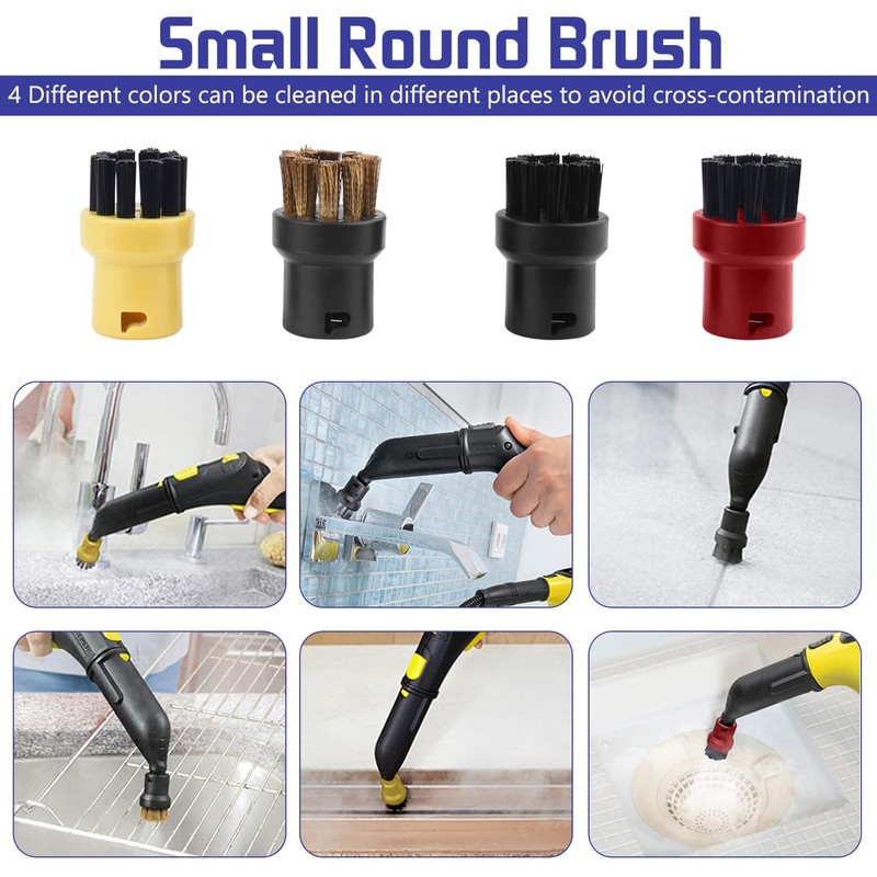 - Different round brushes- The cleaning brushes are clearly distinguishable for different tasks. The large round brushes have a large cleaning surface and high-quality bristle material for removing stubborn dirt. The high-strength bristles of the small round brush effectively clean oily and dirty surfaces such as stove lids, hobs, refrigerators, bathrooms and workpieces.